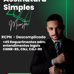 O mais completo plano de assinatura desta plataforma, conterá todas as informações sobre os procedimentos do Registro Civil das Pessoas Naturais, com mais de 45 modelos de requerimentos para download, tudo de acordo com o estabelecido pelo CGJ-RS e CNJ, além disso, contará com uma assessoria exclusiva minha por videoconferência de forma online, tendo acesso a 2 assessorias mensais gratuitas de 1 hora cada.